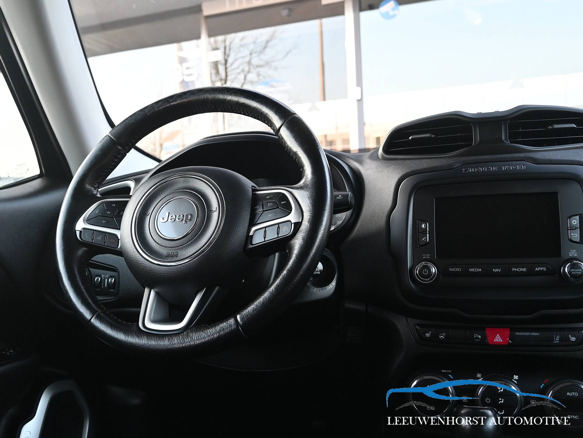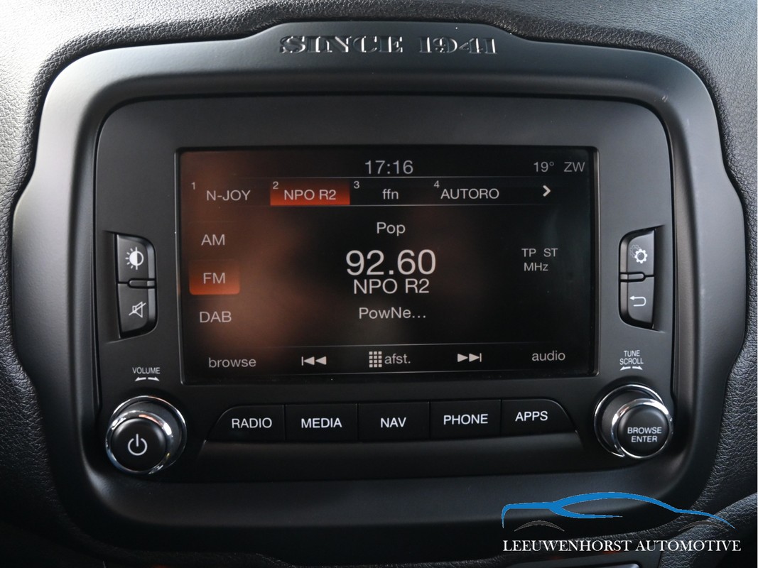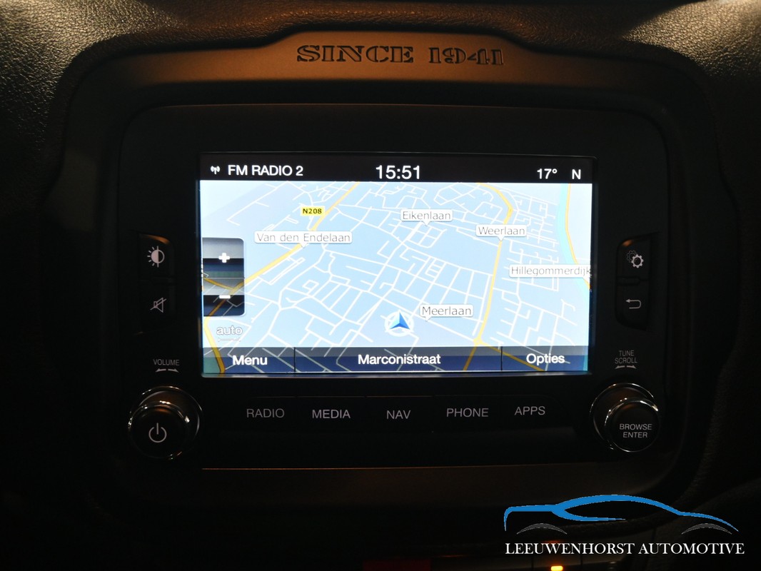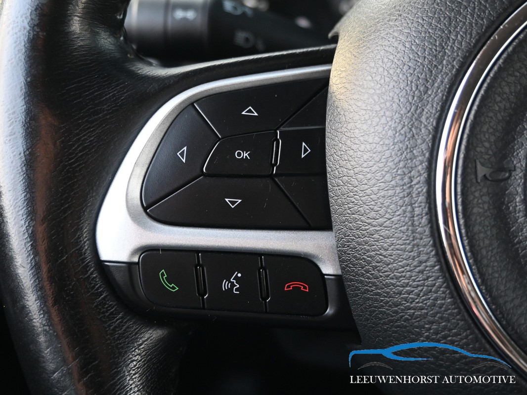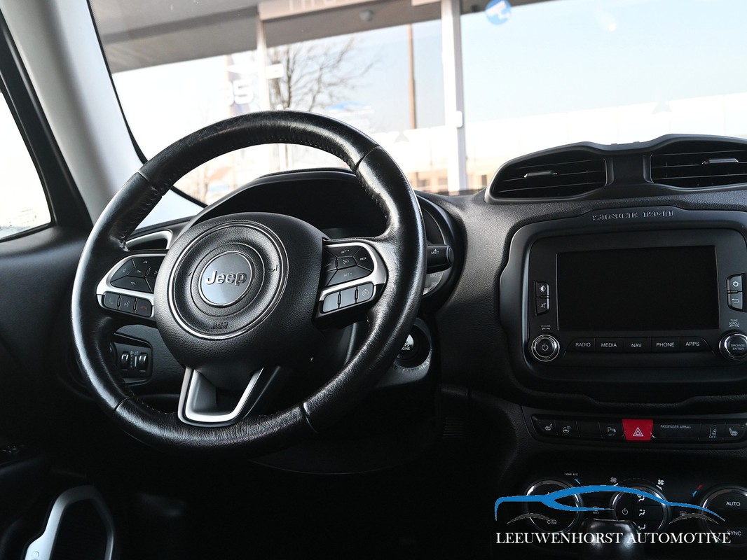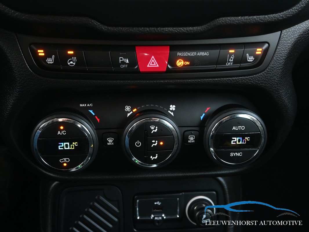 Deze Jeep Renegade Limited is namelijk uitgevoerd met het Function-pack (buitenspiegels elektrisch inklapbaar, keyless entry) en het Optie-pakket (stuur verwarmd, voorstoelen verwarmd), automatische Dualzone airconditioning en Lane Departure Warning Plus.